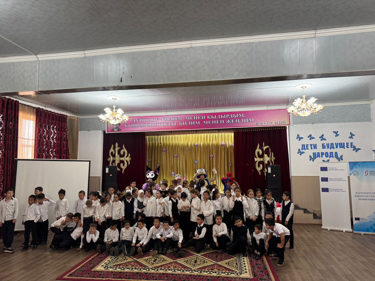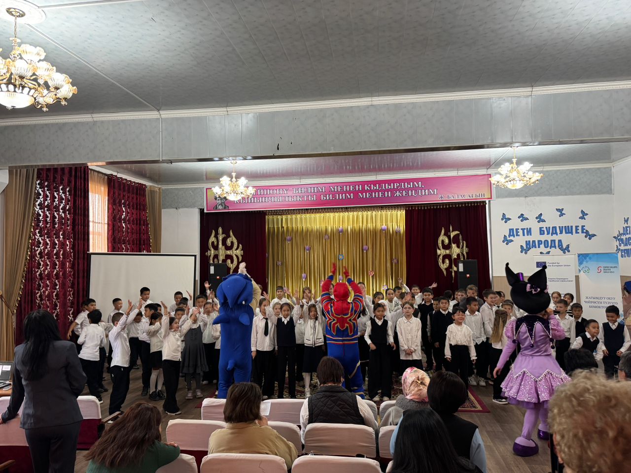 Мааракенин алкагында “Жагымдуу окуу чөйрөсүн түзүүгө көмөктөшүү” долбоору балдарга мектепке керектүү кеңсе буюмдары жана рюкзактардан турган белектерди тапшырды. Балдар үчүн өзгөчө белек болуп, кубаныч жана майрамдык маанай тартуулаган чоң куурчактардын шоусу көрсөтүлдү.