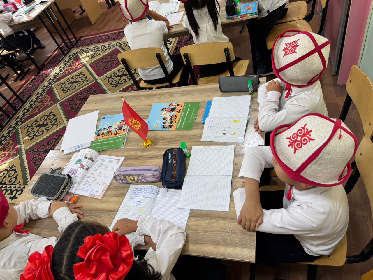 Сабактарда атайын иштелип чыккан окуу материалдары жана таяныч басылмалар колдонулуп, ар бир бала өз мүмкүнчүлүгүнө жараша катыша тургандай шарттар түзүлүүдө. Публикациялар балдардын социалдык көндүмдөрүн өнүктүрүүгө жана толеранттуулукту калыптандырууга көмөктөшүүчү маанилүү курал катары кызмат кылууда.