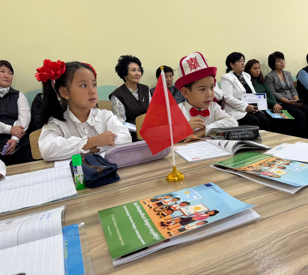 Белектер балдардын окууга болгон кызыгуусун арттыруу жана мектепке даярдыгын колдоо максатында берилди. Ар бир топтомдо рюкзак, дептерлер, жазуу жана сүрөт тартуу үчүн керектүү кеңсе буюмдары камтылган.